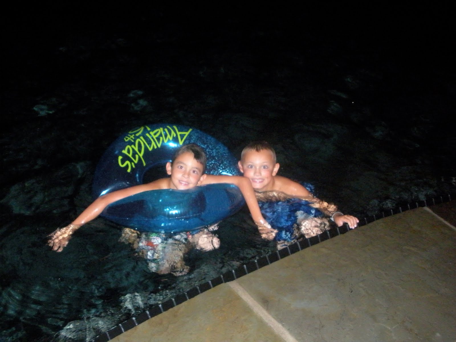 We had the greatest July 4th this year at the Schaad's. They rented a barge filled with millions of fireworks. They catered Famous Dave's BBQ and ribs and it was delicious!!!! Mason had all his best buddies there from school and Taylor had a lot of the cheerleading girls there so they did stunts in the pool which made her night! It was so great to be surrounded by such wonderful friends!